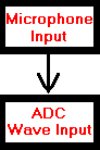 Let's consider a typical, basic audio card. First of all, if the audio card is capable of recording digital audio, then it typically has a microphone input jack (with some sort of pre-amp), and it also has an analog-to-digital converter (ADC) to convert that analog microphone signal to a digital stream. Therefore, it has two components -- the Microphone input component, and the ADC component. The Microphone input is piped into the ADC. So, we can represent the layout with the following block diagram showing two components, with the signal flow between them (ie, the arrow)